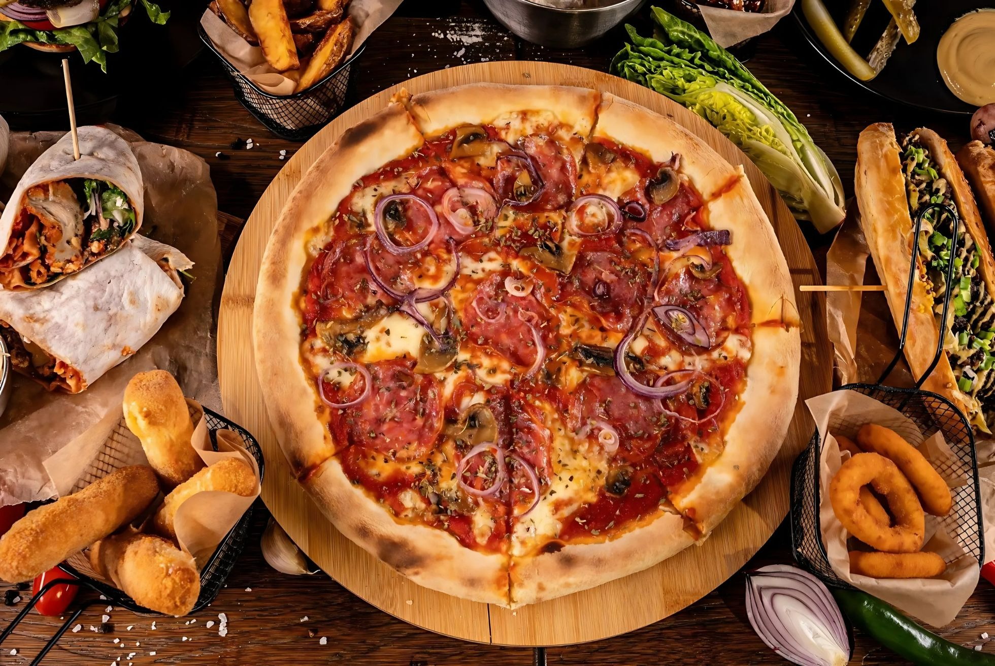 W Arena Pizza & Bistro łączymy pasję do sportu z miłością do dobrego jedzenia! ⚽🍔🍕 Tutaj możesz obejrzeć najlepsze mecze na dużym ekranie, a jednocześnie rozsmakować się w soczystych burgerach, chrupiącej pizzy i szerokim wyborze dań, które zaspokoją każdy apetyt.